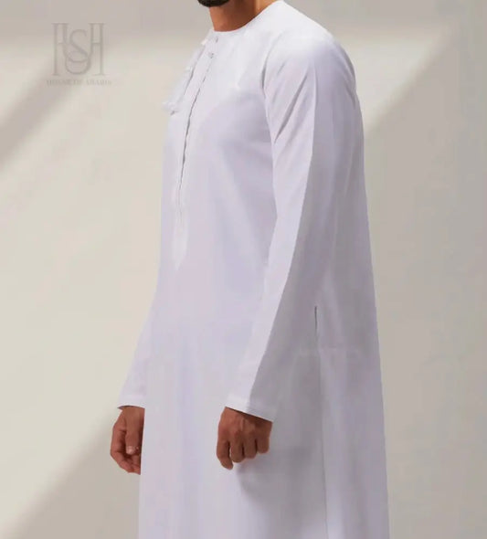 Vendor:House of ArabiaRegular price £29.99 GBPRegular priceUnit price / perSale price £29.99 GBPMen’s Omani Thobe - Full White with Tassel