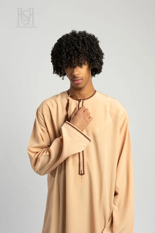 Vendor:House of ArabiaRegular price £21.99 GBPRegular priceUnit price / perSale price £21.99 GBPMen’s Moroccan Thobe - Cream with Bronze Embroidery