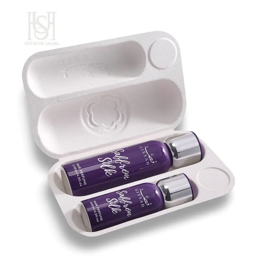 Vendor:Arabian OudRegular price £112.99 GBPRegular priceUnit price / perSale price £112.99 GBPSaffron Silk Set(135ml+65ml) Unisex Hair Mist by Gissah Fragrances